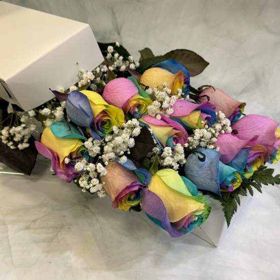 Price: $79.99Dozen Rainbow Roses Gift Boxed