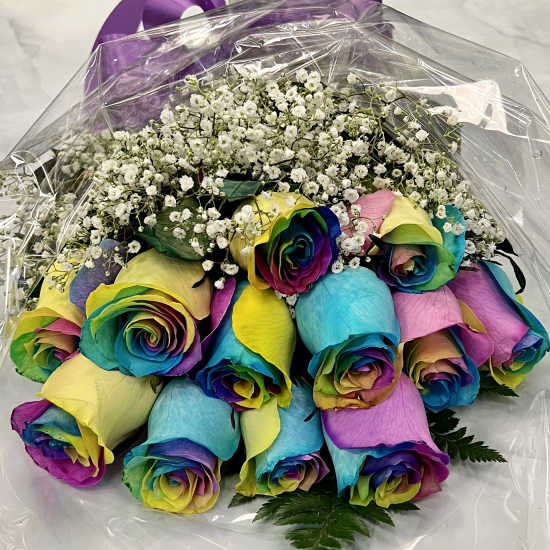 Price: $69.99Dozen Rainbow Roses in a Presentation Bouquet